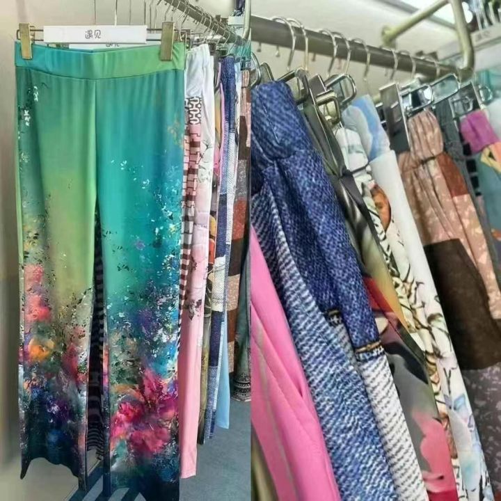 外贸原单女士宽松微喇弹力印花瑜珈长裤,很多种花型,...