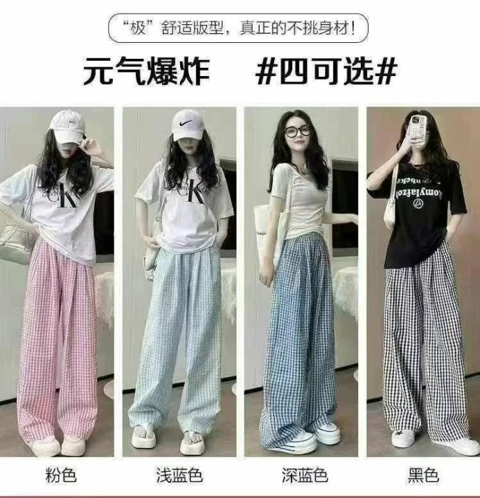 下身阔腿长裤[太阳]全清8.5,3200件,均码,整款,理想格子阔腿裤女夏薄款慵懒松弛感宽松直筒休闲阔腿裤,慵懒感十足,面料舒适,夏季首选款,又漂亮又舒适[色],200件起分货9.5