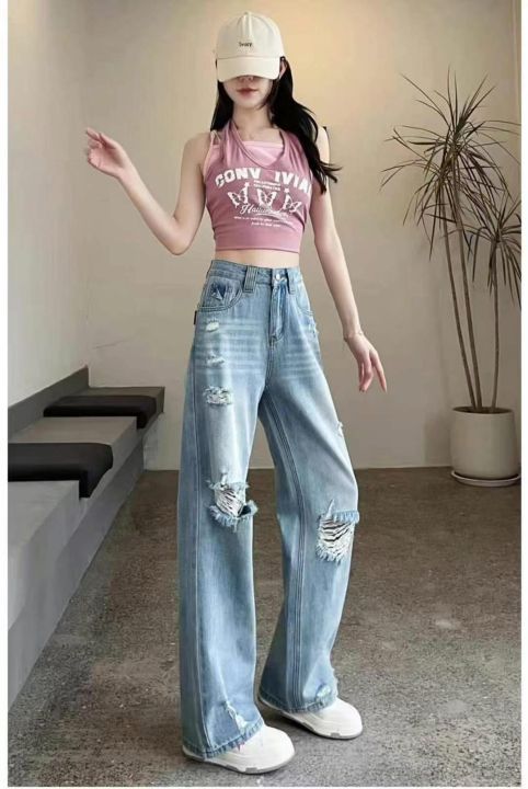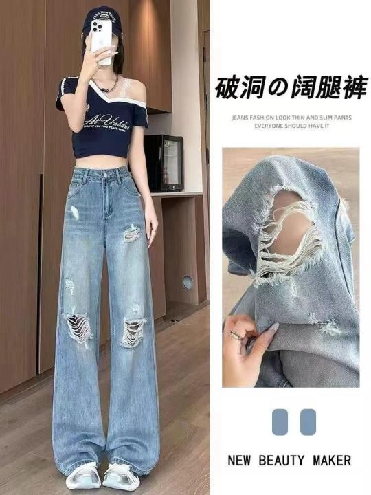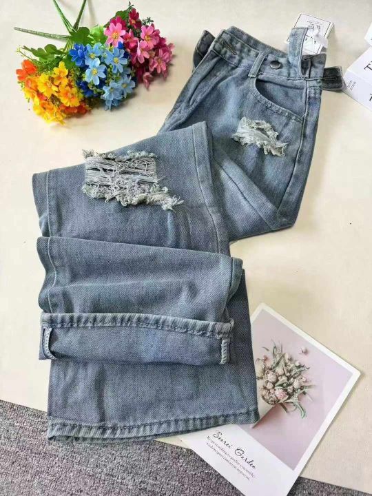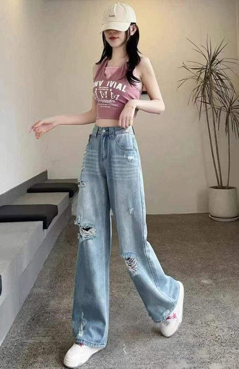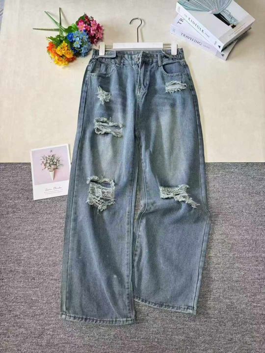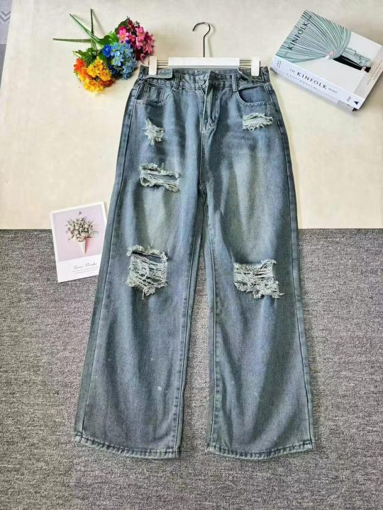 洋气个性复古宽松显瘦破洞直筒拖地牛仔裤380件,码数:S-5XL,单款单色,品质好,独立包装带吊牌,全清8.8元秒,分货➕1。