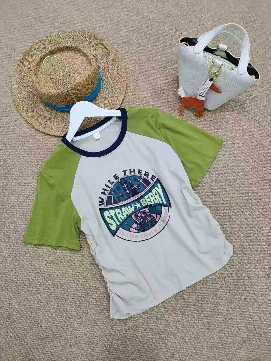 [月亮]:8.5清232件[月亮]:甜酷美式插肩撞色辣妹棉T[...