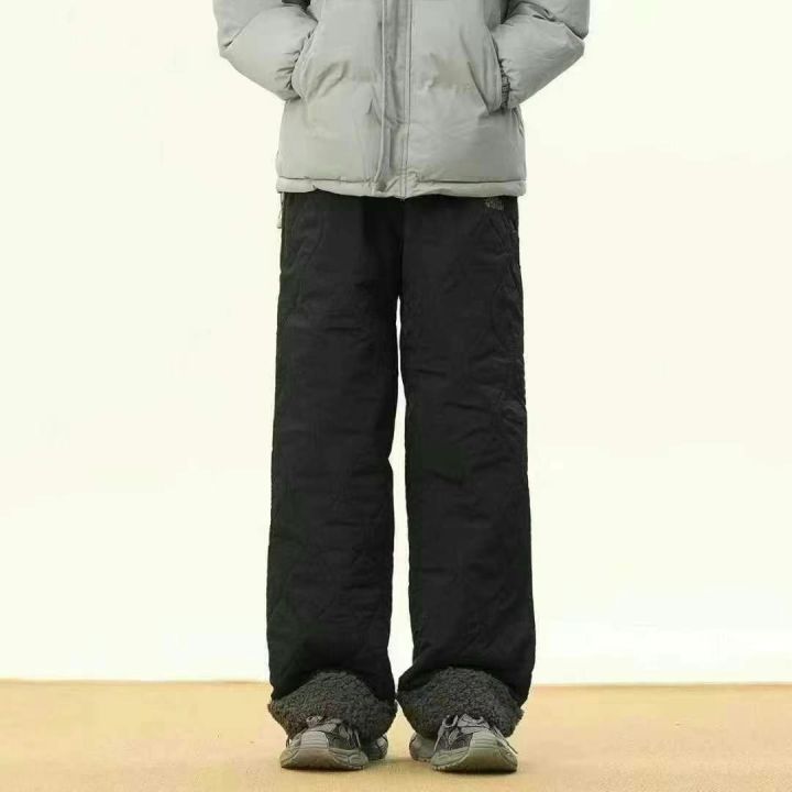 防寒休闲羊羔保暖裤男女冬季潮宽松葫芦纹防水直筒裤加...