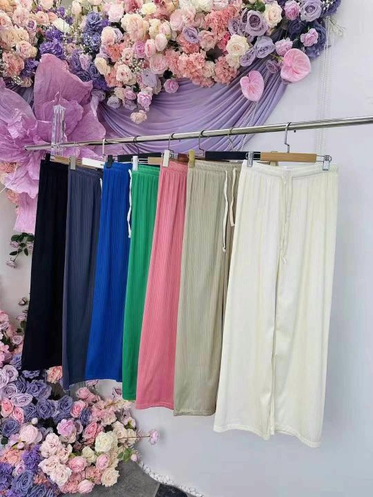 下身长裤[太阳]全清价7.33800件。均码。 夏季女款冰丝阔腿裤,糖果色,垂感好,松紧腰带抽绳,有弹力,独立包装,腰部有弹力松紧不挑人,这个性价比直接拉满✅100件起多色混配8.3