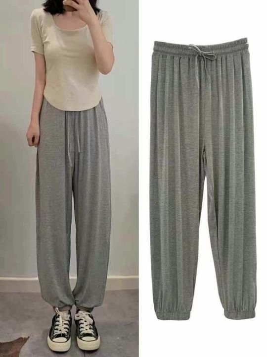 夏天薄款宽松莫代尔夏款高腰萝卜哈伦裤,整款三色,数...