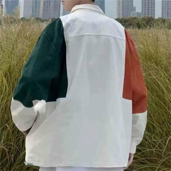全清12.8,春秋新款水洗棉工装夹克潮流拼接撞色宽松大码休闲夹克外套,码数M到5XL,大码数多,共200件左右,分货+1