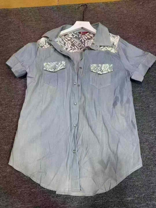 359件蕾丝浅蓝色短袖,个别扣子生锈不多,衣服上是水印,码数比例看最后一张图片,纯棉面料,独立包装,懒得得挑亏本处理3.8[庆祝]