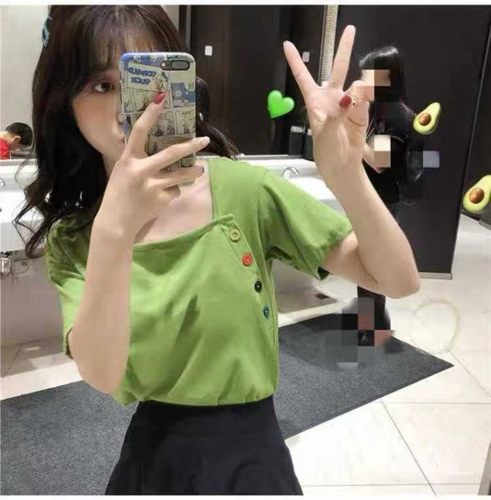 不规则短袖65棉t恤女夏新款韩版ins潮学生泫雅风宽松百...