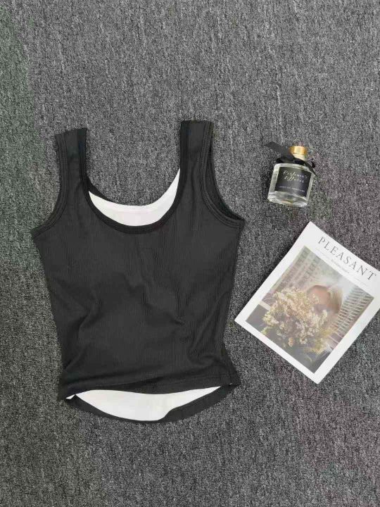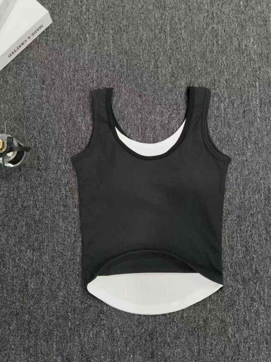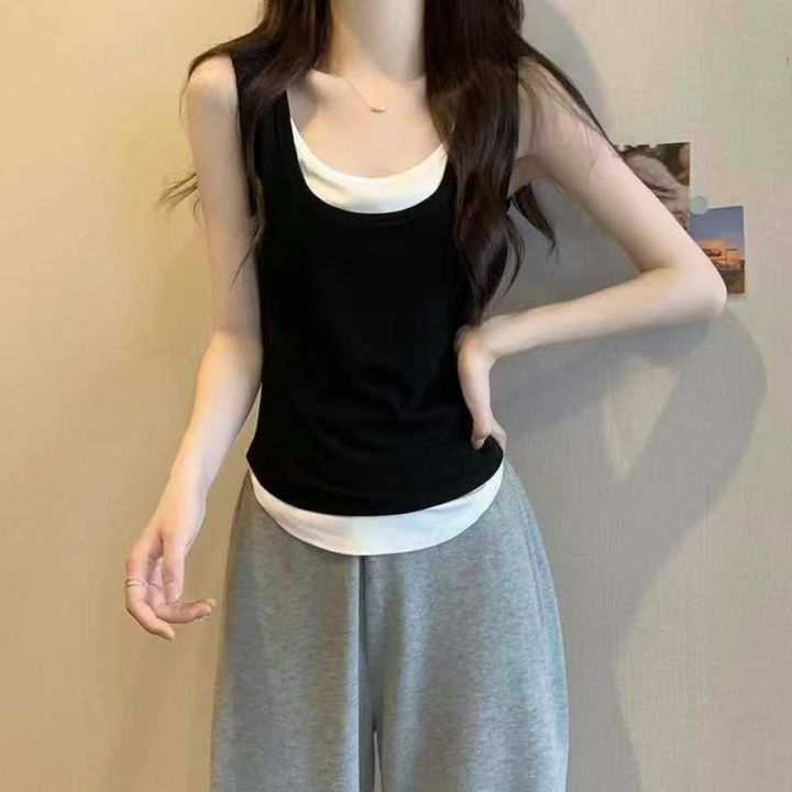 带胸垫港风假两件背心设计感小众辣妹打底内搭吊带外穿...