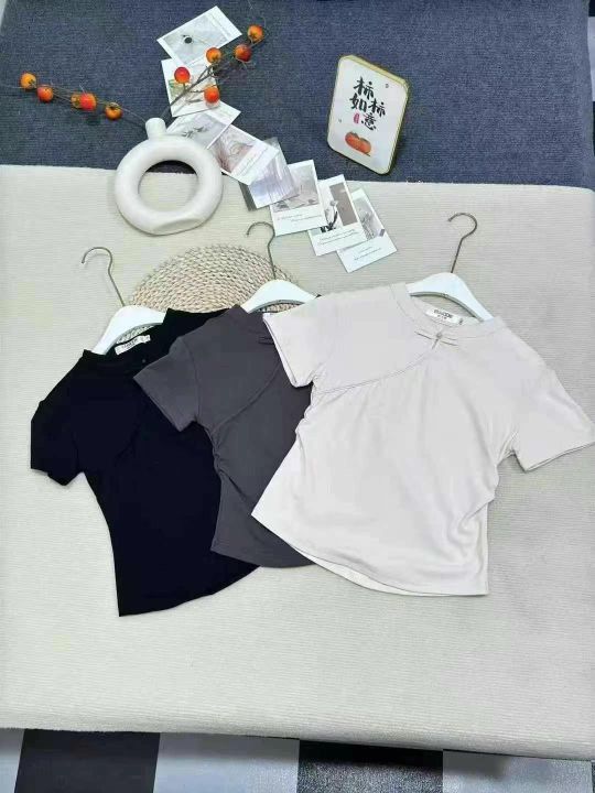 新中式国风刺绣盘扣纯棉短袖T恤女装夏季气质设计感修身显瘦短款上衣,(刺绣跟净色差不多各半)数量1440件,码数s-xl,独立包装,全清7.8,分货+0.5元