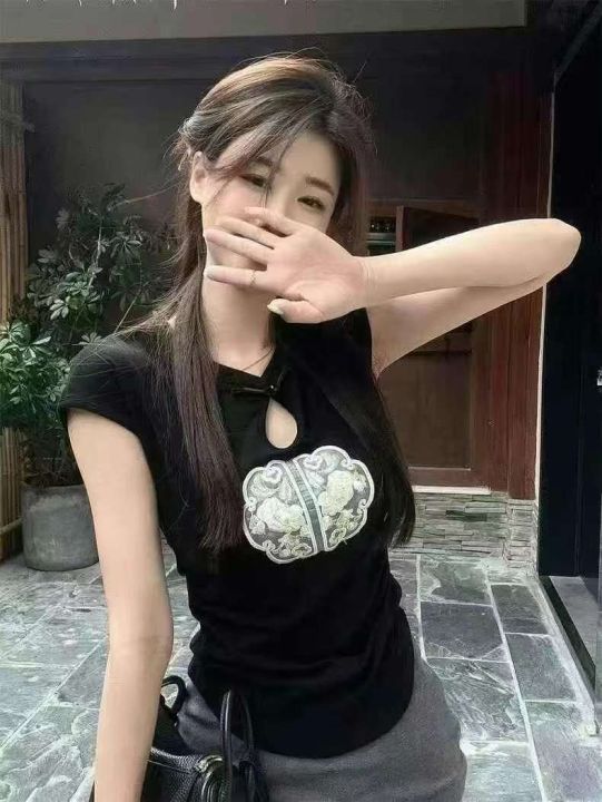 新中式国风刺绣盘扣纯棉短袖T恤女装夏季气质设计感修...