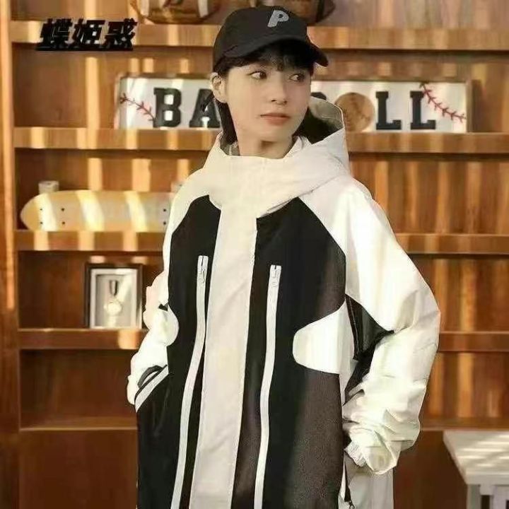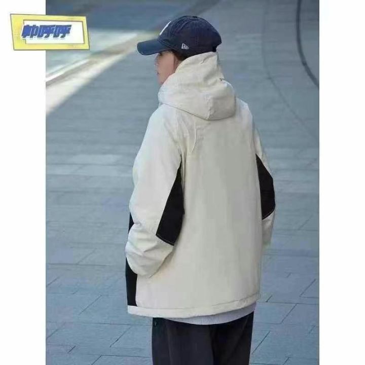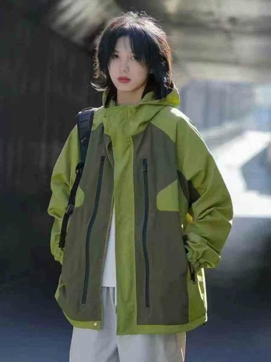 山系机能男女同款拼接撞色户外双层连帽·带里衬防风冲...