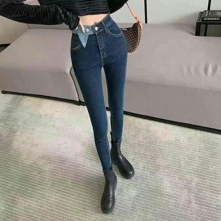 高弹力牛仔小脚裤☕️50条全清11.8元码数S到5xl,撞色...