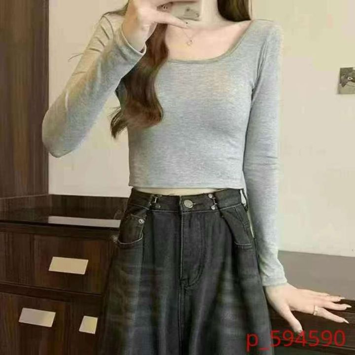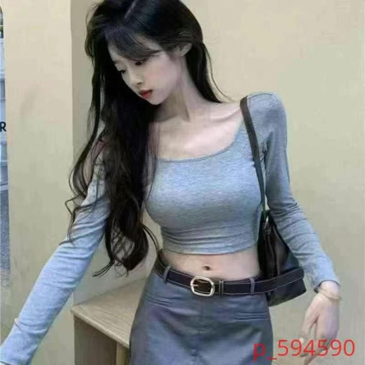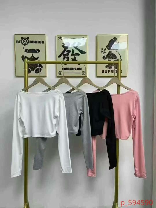 天猫在售款2150件左右高品质冰丝螺纹靓妹短款长袖T恤,高弹力,单款四色,S-XL,全新货三件一包装 Mesh Long Sleeve T-Shirt تي شيرت بأكمام طويلة من القماش المبرد_@_@