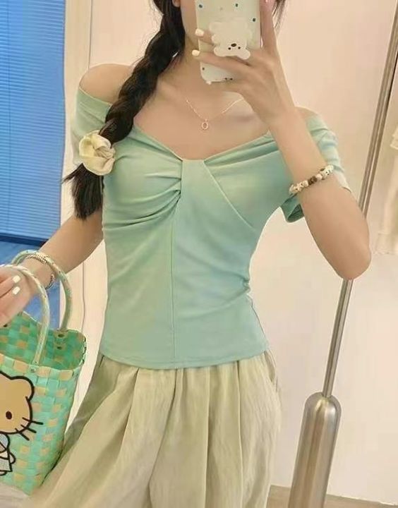 法式甜辣一字肩短袖125件5.8,面料舒适透气,有弹力,...