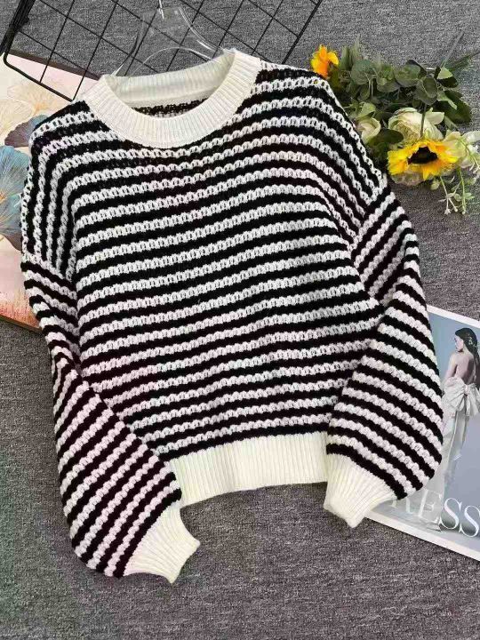 春秋新款高品质宽松显瘦慵懒风撞色条纹复古百搭圆领包芯纱套头毛衣,面料软糯Q弹厚实有份量,均码宽松落肩版,独立包装,1000件左右,全清8.9元超低价秒杀!分货加一!