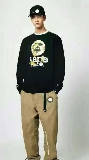 男装2025新款秋冬季加绒潮牌猿休闲印花迷彩炸街长袖百搭圆领卫衣男装,加绒保暖舒适,后领包边,高品质[强],秒杀清,100件起分货13.8