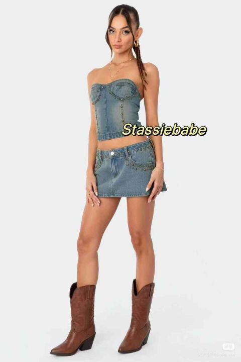 夏季新款欧美原单女装洗水棉辣妹性感牛仔短裙,独立包...