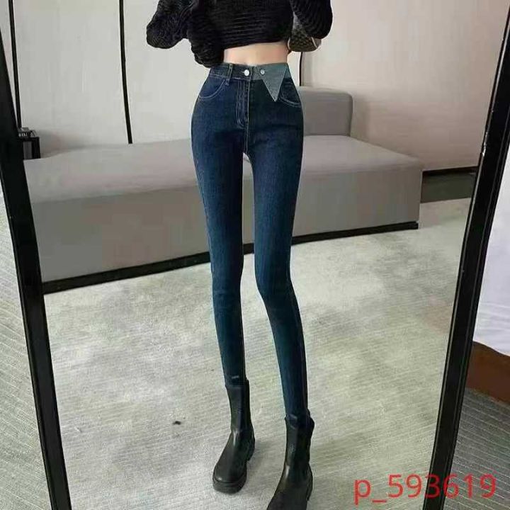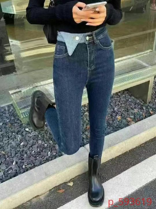高弹力牛仔小脚裤☕️50条全清11.8元码数S到5xl,撞色牛仔裤女春夏新款大码胖mm高腰显瘦炸街小直筒裤潮 High Elasticity Jeans جينز مرن عالي_@_@