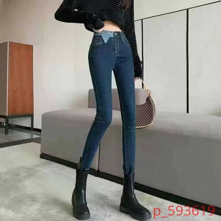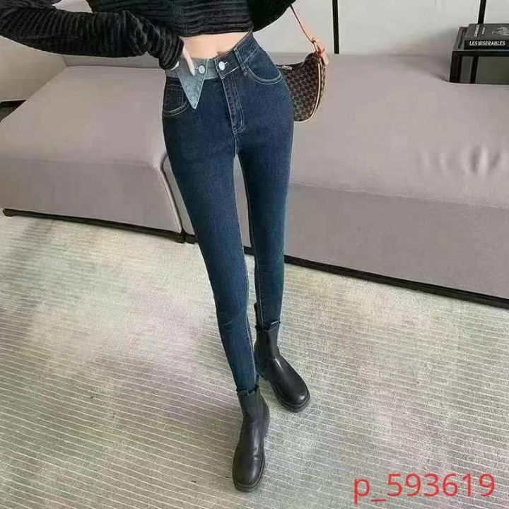 高弹力牛仔小脚裤☕️50条全清11.8元码数S到5xl,撞色...
