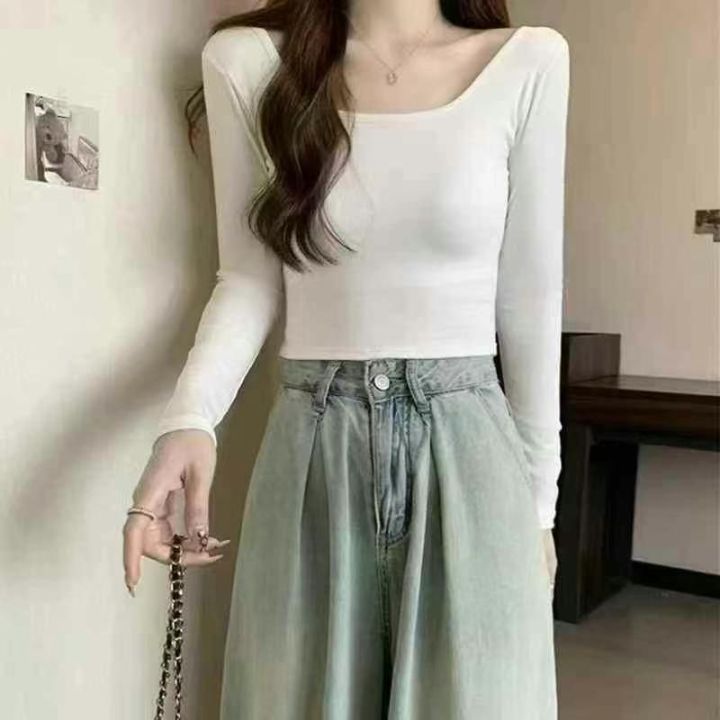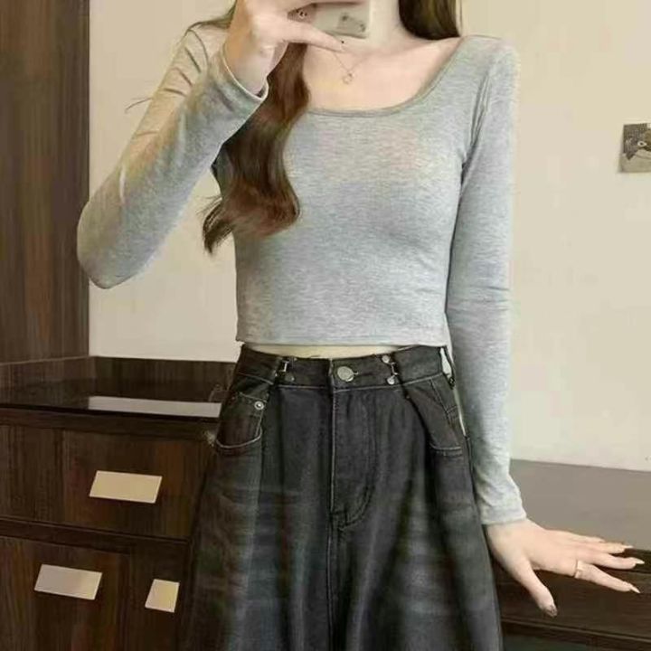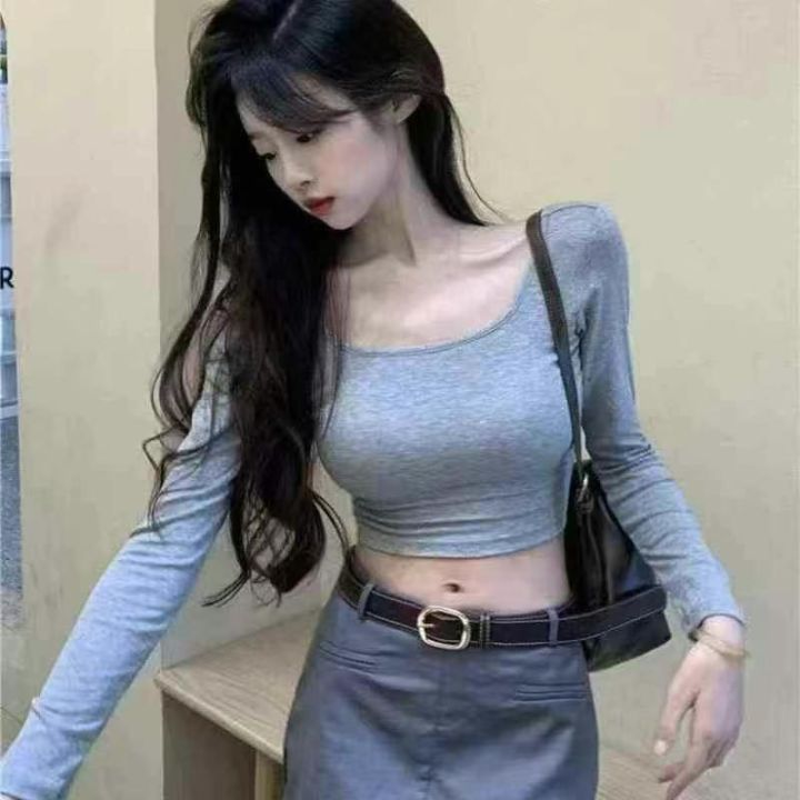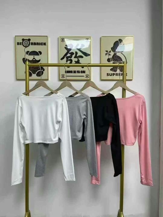 天猫在售款2150件左右高品质冰丝螺纹靓妹短款长袖T恤,高弹力,单款四色,S-XL,全新货三件一包装