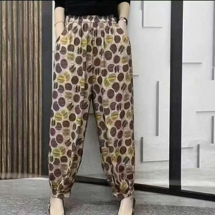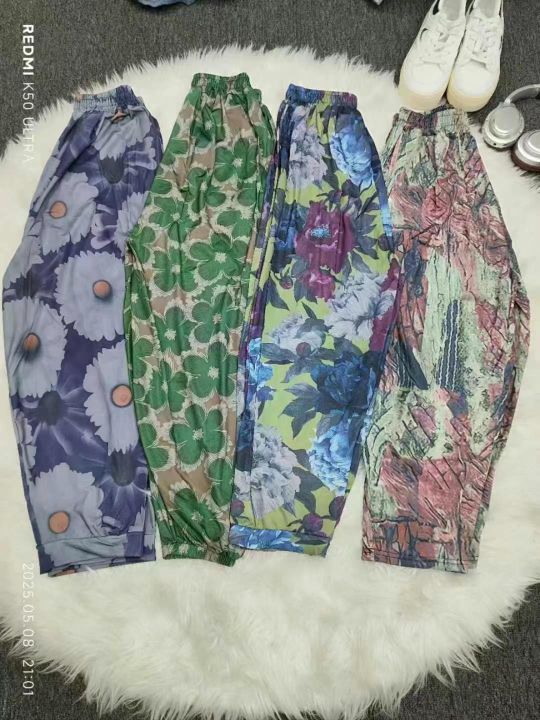 7.8 清 800 件冰丝雪纺花裤子女夏季薄款新款显瘦抖抖凉凉束脚哈伦灯笼裤,独立包装货品干净无瑕疵,码数 1-5 码,分货+0.5.