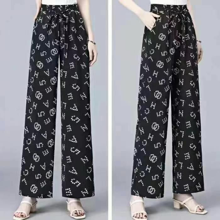 6.8 清 1000 条 冰丝阔腿裤女夏季薄款高腰垂感中年妈妈裤子宽松花裤子大脚裤大码,冰冰凉凉弹力十足,独立包装货品干净,码数 1-6 码,分货+1.