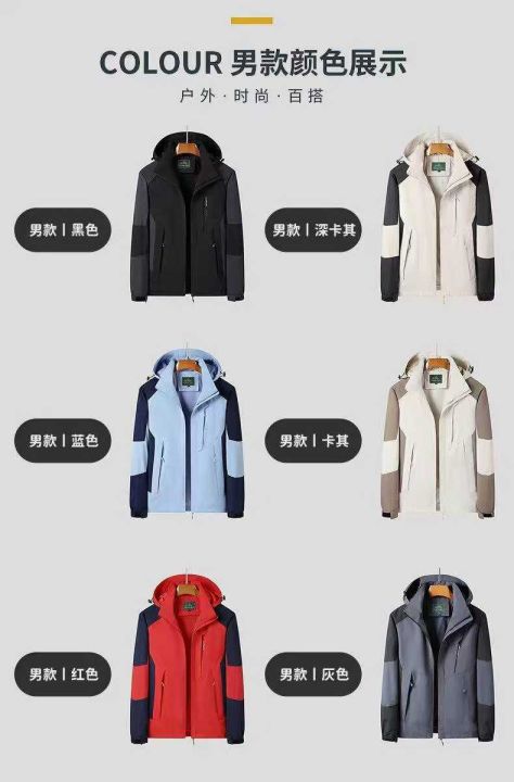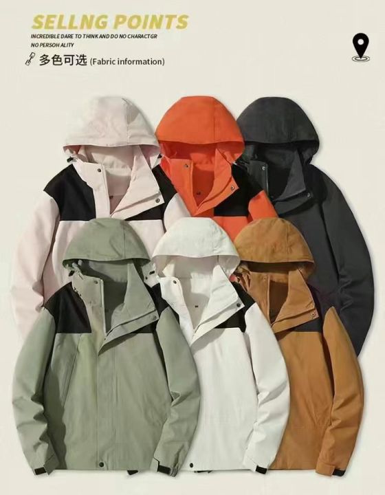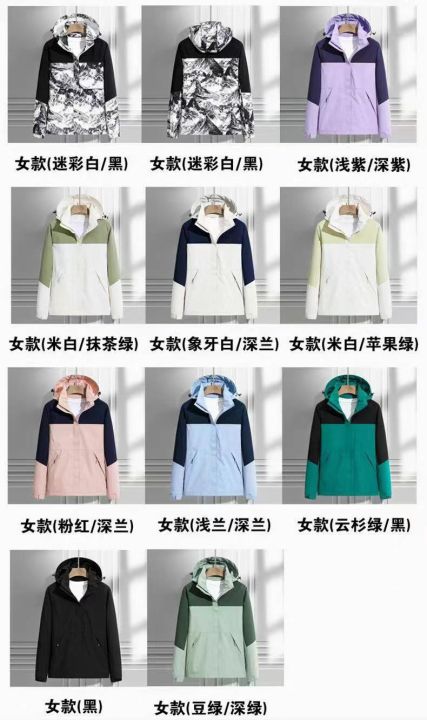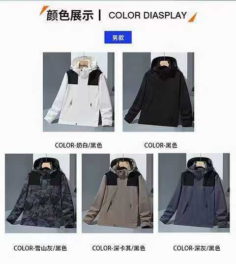 爆款冲锋衣25年所有爆款集合、没有一件低端货、全部戴帽(可拆卸)、货品干净漂亮、无瑕疵、男女各半比例、一份100件起(尺码S到5XL专柜版)、直播,地摊,优质好货…百分百不死货。