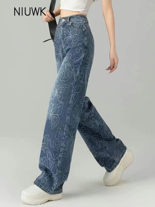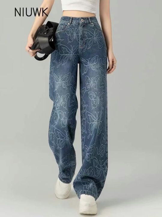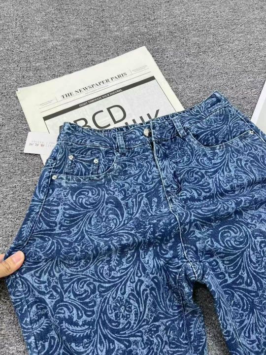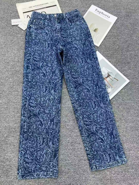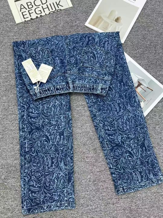 ☕️高弹力外贸大码胖mm宽松直筒牛仔裤新款窄版设计感提花裤子宽松阔腿裤150条全清12.8元,棉弹码数28-35 ,精品独立包装。