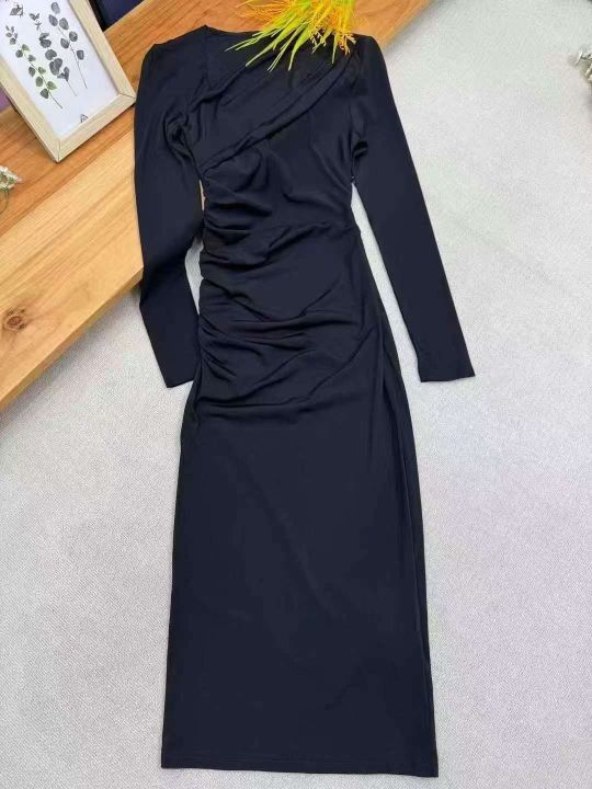 辣妹黑色斜领连衣裙新款修身(原独立包装)
