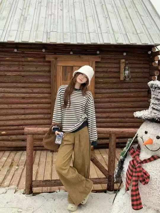 秋冬新款高品质女装复古圆领条纹休闲慵懒宽松2条毛包芯纱套头毛衣,独立包装,均码宽松款,面料软糯厚实弹力,1430件,全清9.9元超低价秒杀!分货加一!