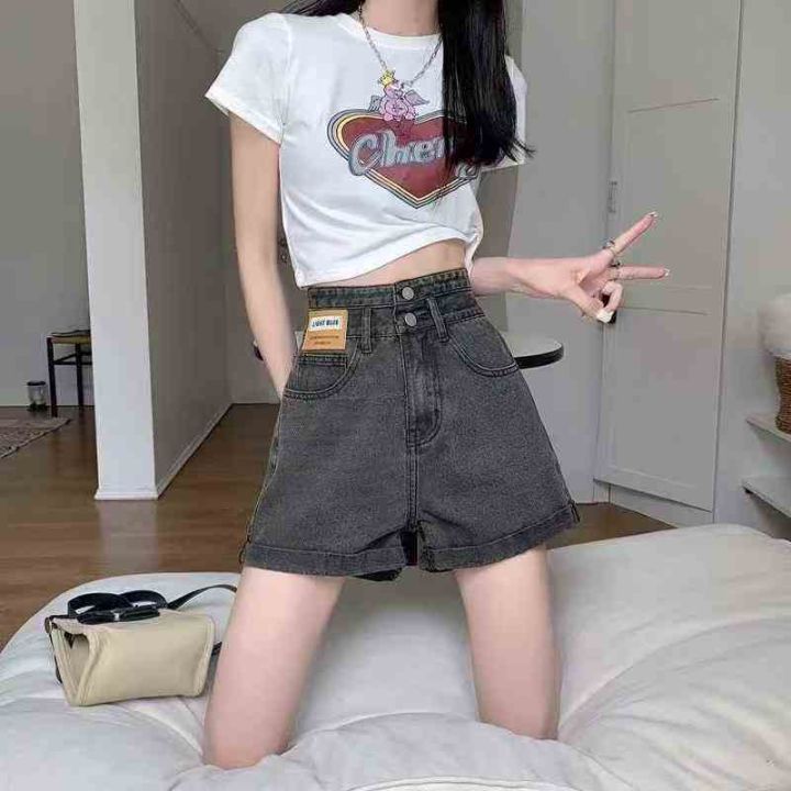 9.9清271件双扣贴标牛仔短裤女直筒夏季新款a字超高腰宽松卷边阔腿热裤ins潮 码数L-4XL 独立包装