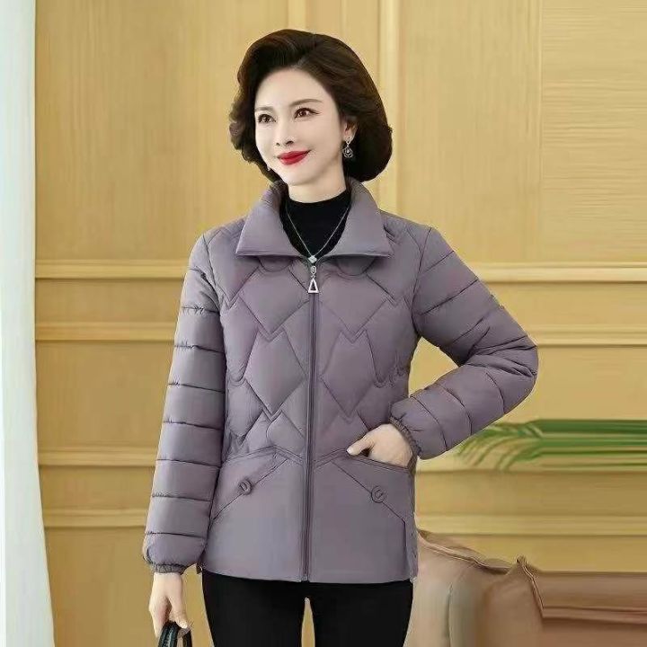 秋冬羽绒棉衣中老年妈妈女士洋气立领时尚轻薄棉服(黑...