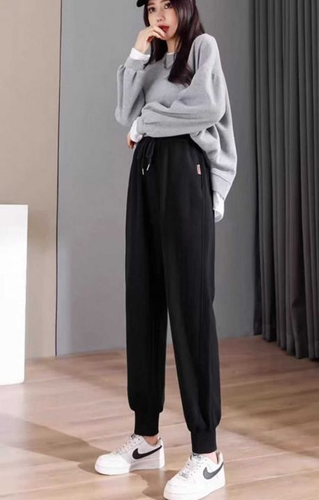 秋季新品松紧腰高腰宽松显瘦休闲束脚运动卫裤,独立包装带吊牌,单款3色,...