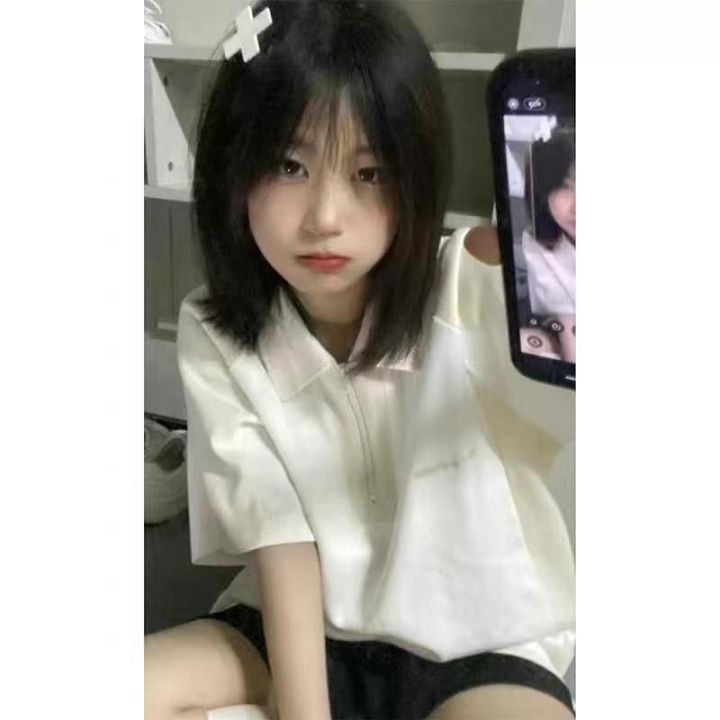 电商仓回收77件学院风宽松棉质短袖polo衫上衣女,码数m-l。质量款式都很好。全部独立包装。