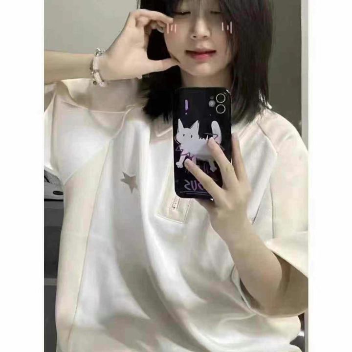 6.8清电商仓回收77件学院风宽松棉质短袖polo衫上衣女...