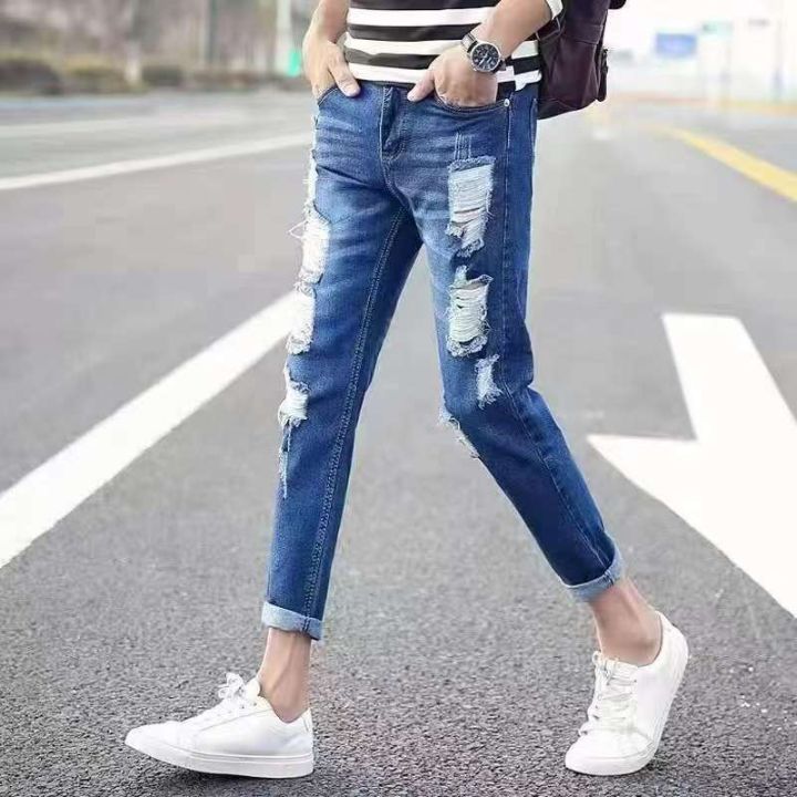 牛仔裤男女同款破洞潮怀旧复古弹力紧身小脚牛仔裤,高弹力独立包装,码数S- X L,数量255条,全清7.8元秒。分货➕1。