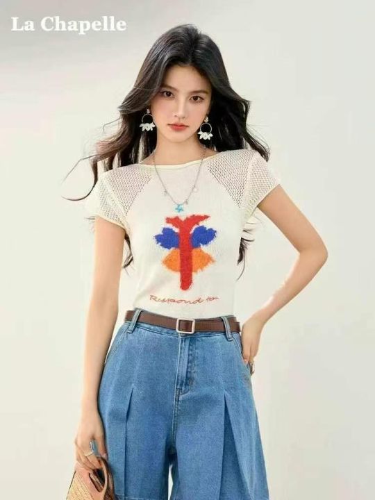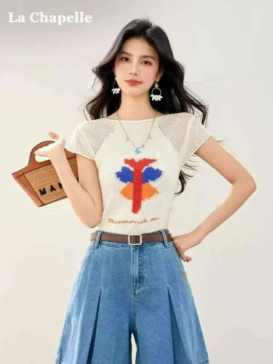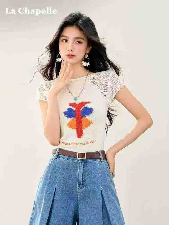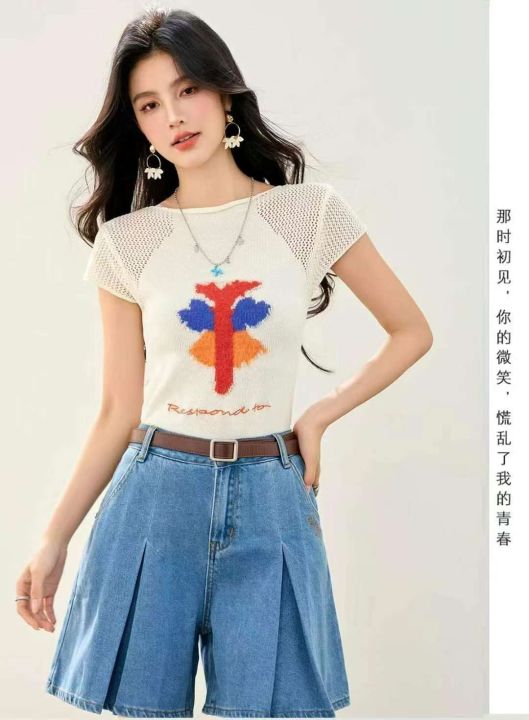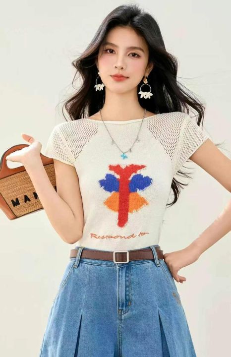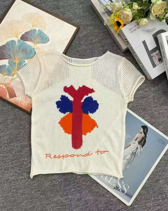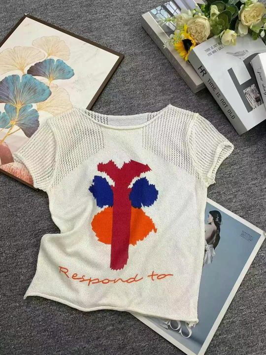 夏季新款设计感镂空提花冰丝针织短袖t恤,独立包装,...