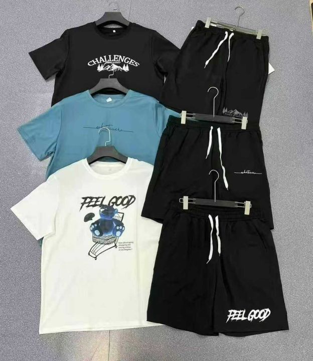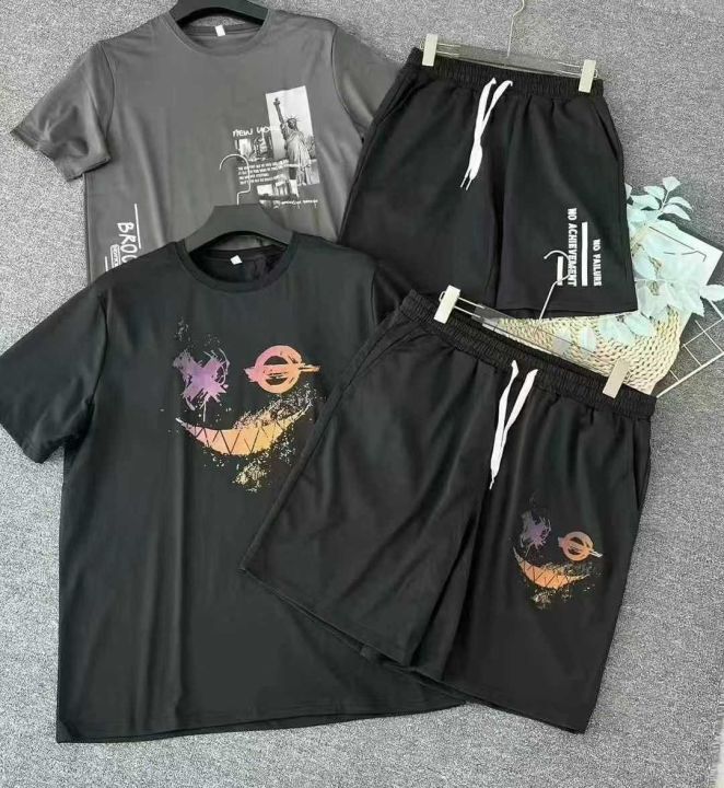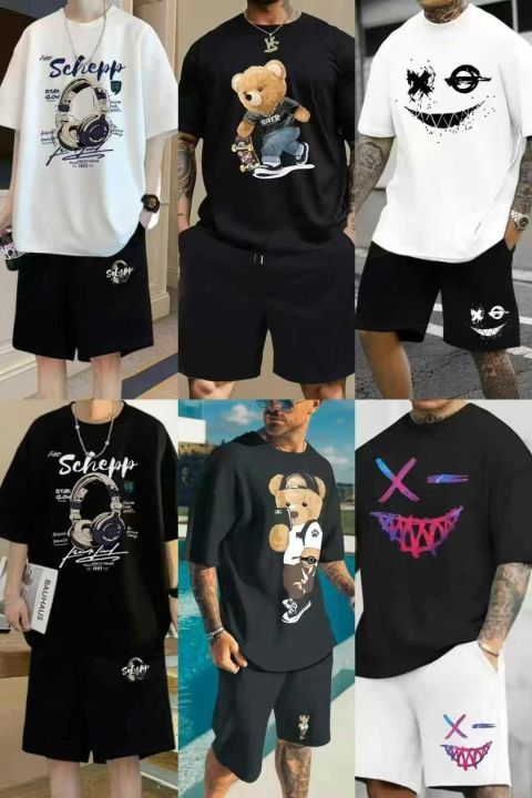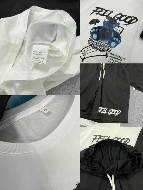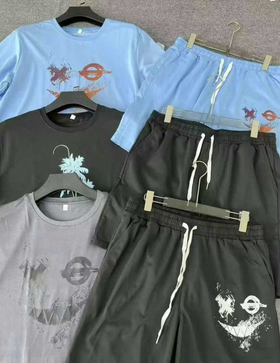 潮牌男装短袖短裤套装☕️800套全清11.8 分货12.8,码数S到XXL,宽松版,小整系列多花型颜色,全部都是套装,独立包装。男夏季宽松t恤半袖男潮牌青少年休闲运动衣服套装