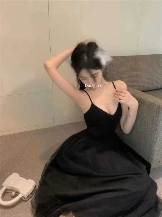 ☕️V领吊带网纱连衣裙收腰设计感小众法式蓬蓬仙女裙...