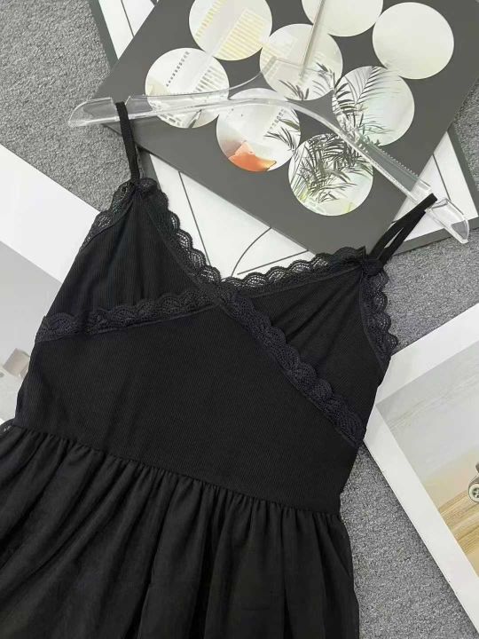 ☕️V领吊带网纱连衣裙收腰设计感小众法式蓬蓬仙女裙甜美气质裙52件全清9.8元,均码,独立包装,肩带可调 ,全部都有内衬。