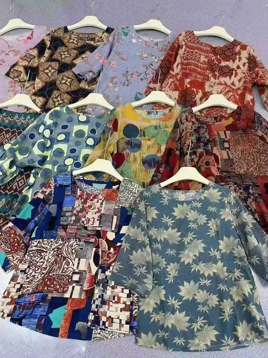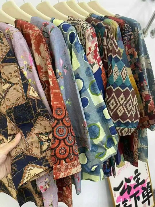 杭派高品质妈妈棉麻系列中袖☕️5800件全清9.9 分货+1 ,两个码数 小码 大码,80-140斤,小整十几个花型,精品独立包装,夏季宽松五分袖妈妈显瘦上衣棉麻上衣新款民族风短袖T恤