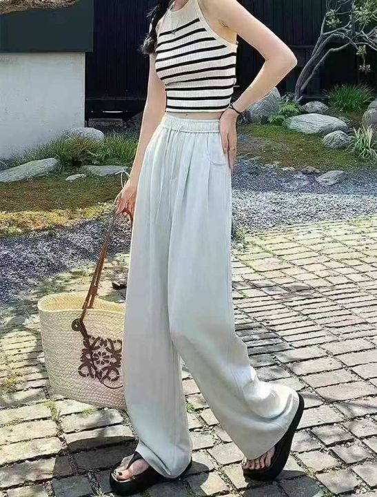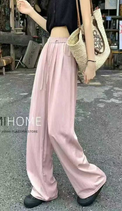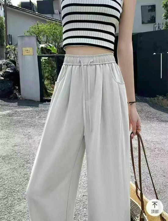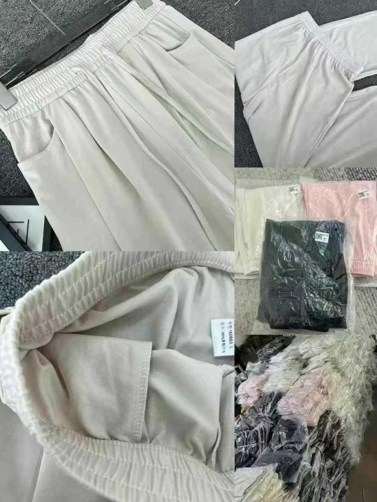 全清价7.9元女休闲舒适高腰休闲垂感显瘦直筒念丝长裤,独立包装,整款多色...