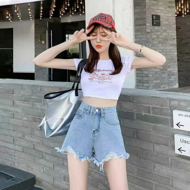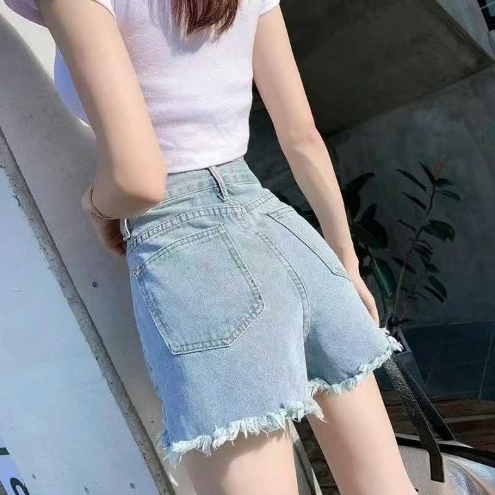 ☕️高腰破洞牛仔短裤女夏宽松显瘦新款磨破a字毛边阔...