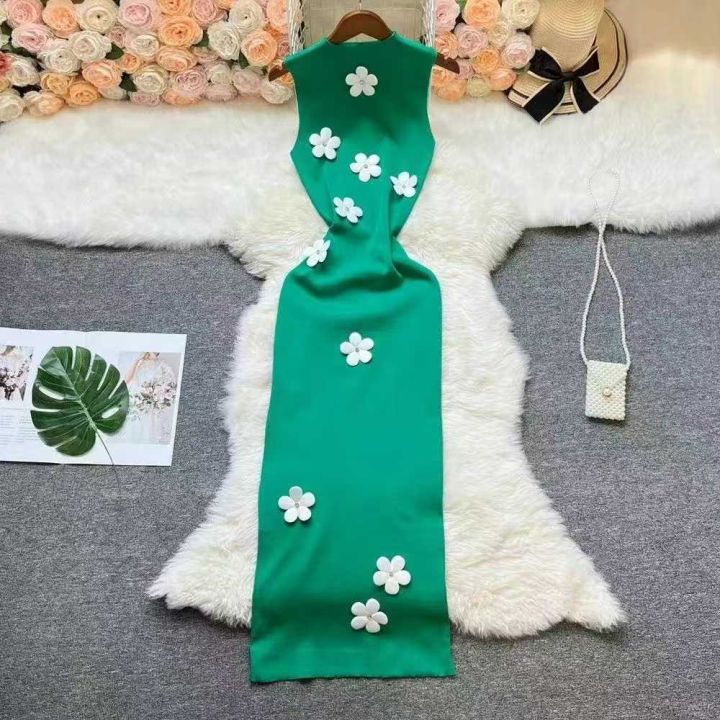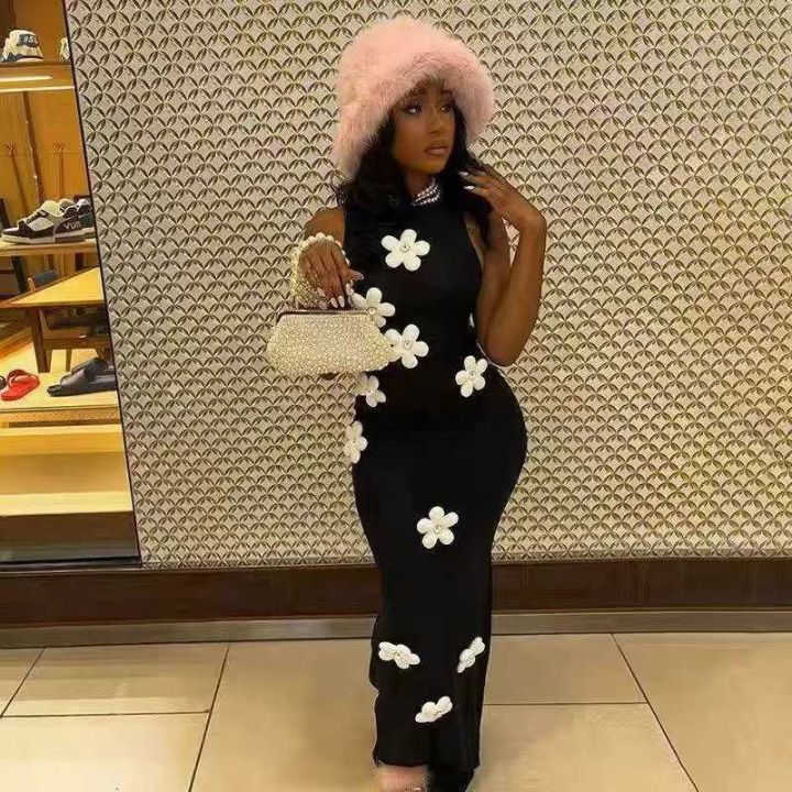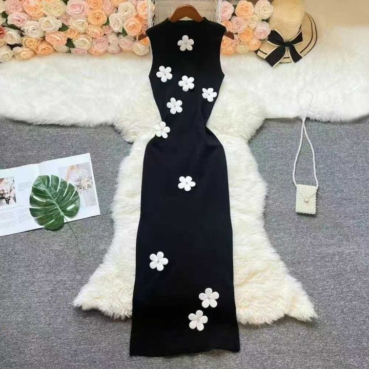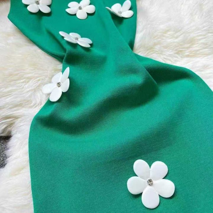 ☕️高弹力外贸小众优雅连衣裙女修身气质花朵收腰显瘦...