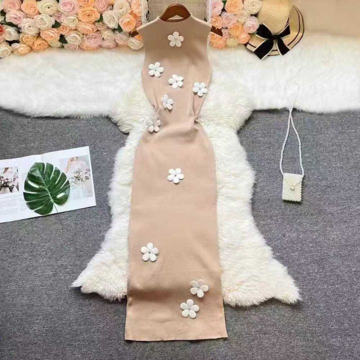 ☕️高弹力外贸小众优雅连衣裙女修身气质花朵收腰显瘦小高领包臀长裙280条全清22元,不分货,M到XL码数,独立包装,图4有5个色。