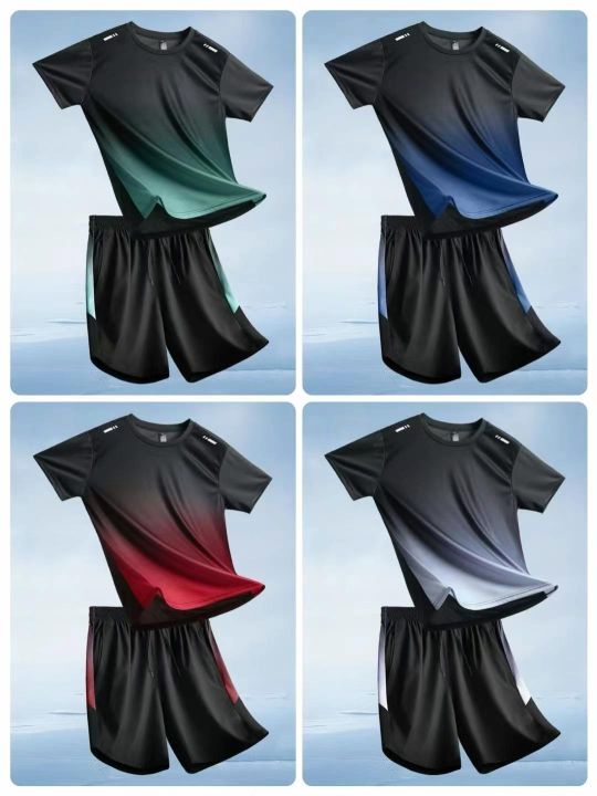 男士运动服套装夏季速干短袖短裤薄款健身T恤跑步篮球训练两件套,独立包装,码数M-5XL,全清6.9元,数量1070套。分货+1