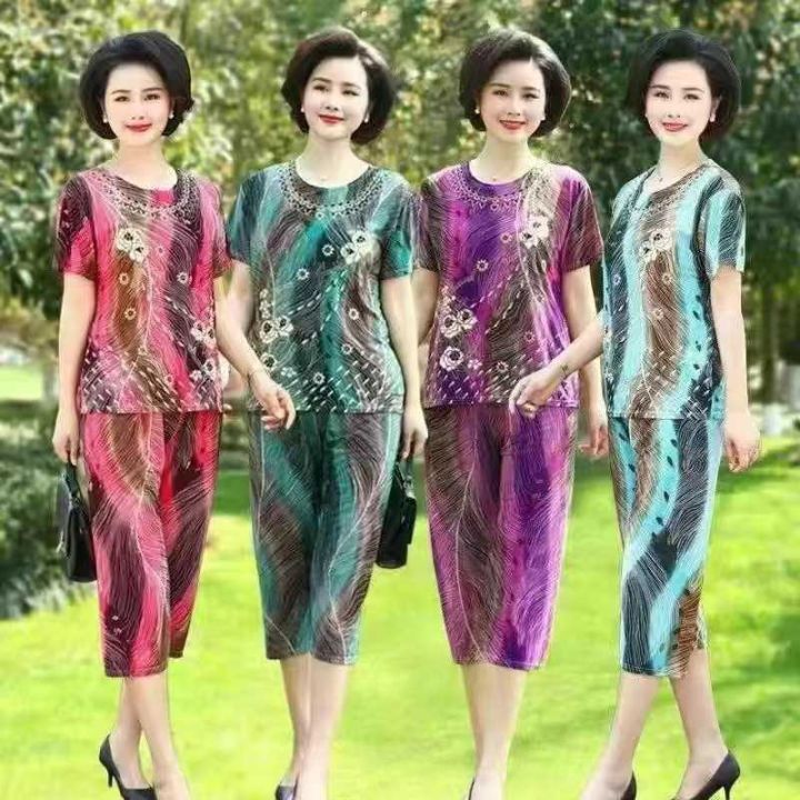 ☕️妈妈短袖套装烫金套装1200套全清12.8分货13.8元,均码,高弹力,十来个颜色,独立包装。妈妈短袖➕七分套装