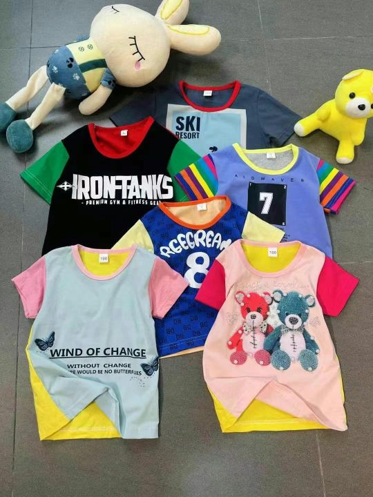 上身儿童短袖[太阳]全清3.98,6800件,码数S-XL,适合1-6岁。 男女童纯棉短袖t恤夏装新款儿童拼接插肩袖休闲宽松宝宝短袖T恤,糖果色色,颜色多,图案漂亮,不仅限图片款,上身效果巨巨好看,无美颜,无滤镜原相机还原质感很好,面料100%纯棉,超低价[哇]太划算了[强]独立包装,配小份100/200件起4.5