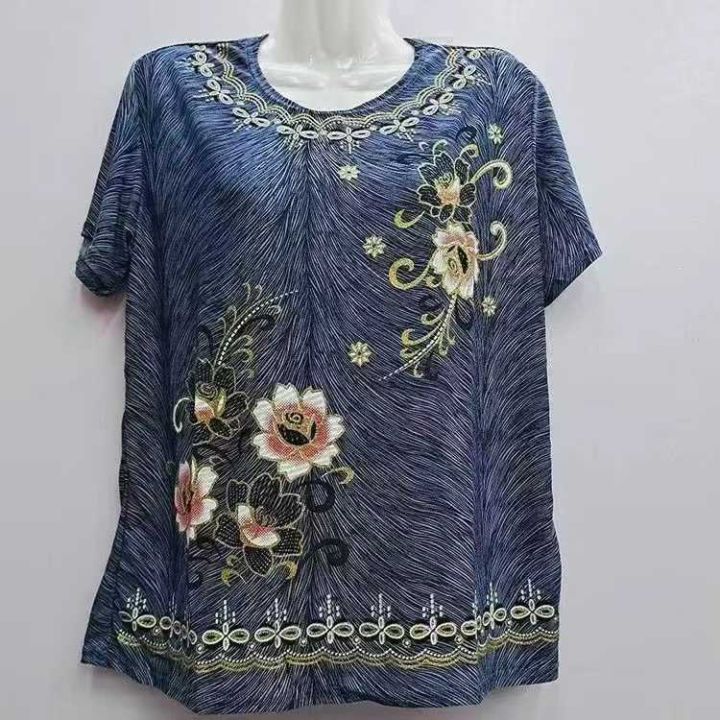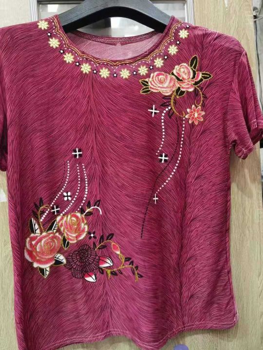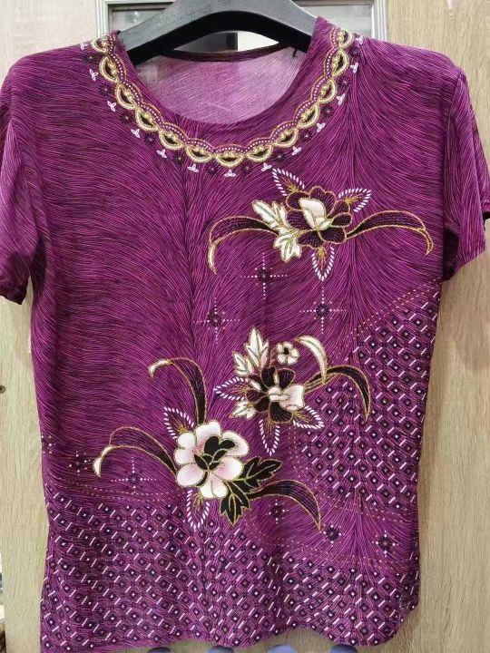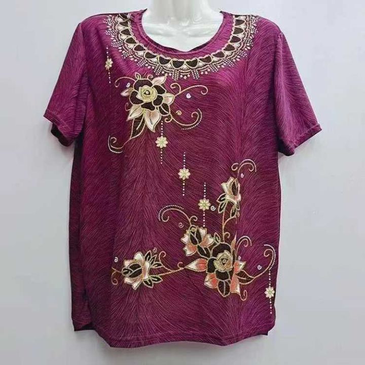 中老年烫金短袖[玫瑰][玫瑰][玫瑰]均码
