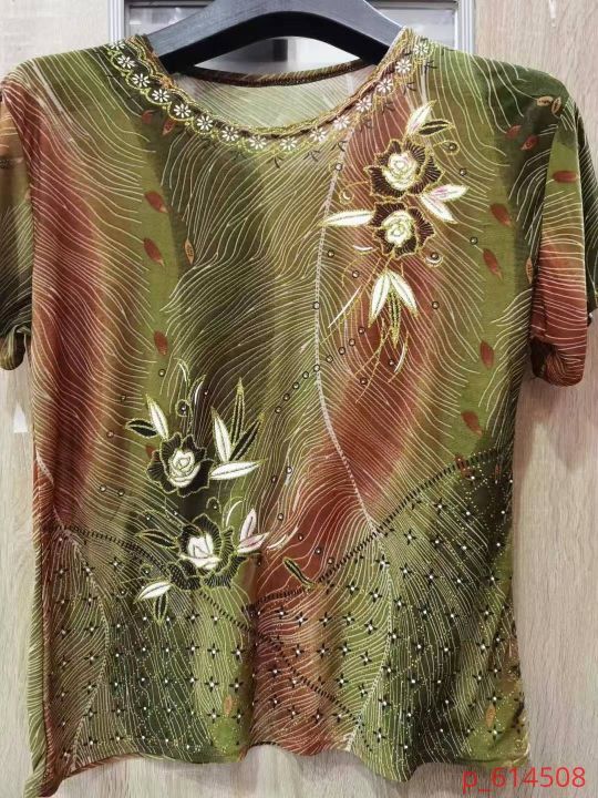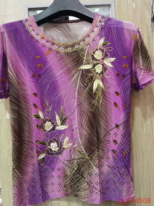 编号:[14017] ¥8.5元 女装/女士服装 大码女装/妈妈装/中老年服装 上衣 中老年烫金短批发跑量中老年短袖烫金均码Middle-aged and elderly gold foil short sleeve, one size wholesale for bulk sales at 8.5 yuan.تي شيرت قصير الأكمان مذهّب لكبار السن، مقاس واحد للبيع بالجملة بسعر 8.5 يوان. 库存:有货