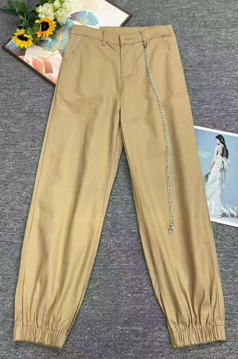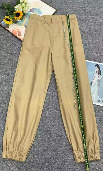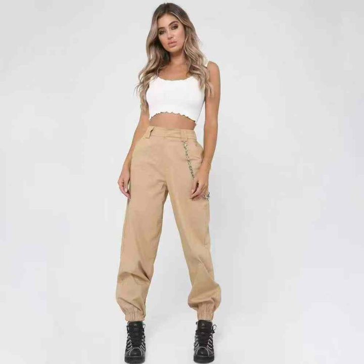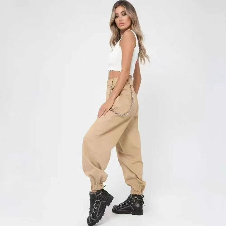 春夏季新款欧美明星同款高腰工装松紧腰束脚休闲裤,独...